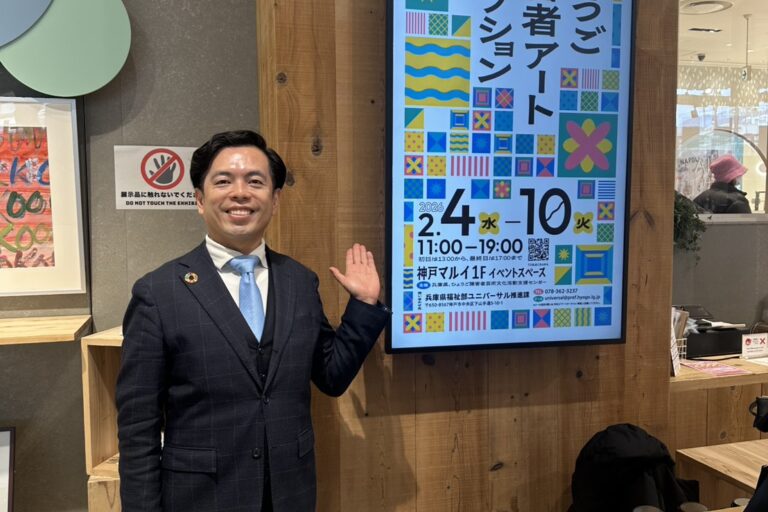 神戸マルイで開催されている「ひょうご障害者アートオークション」へ行ってまいりました。 会場に並ぶ作品…