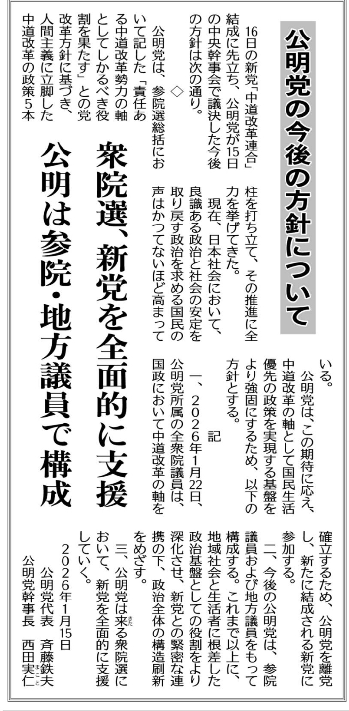 今後の公明党は、参院議員および地方議員で構成される体制のもと、