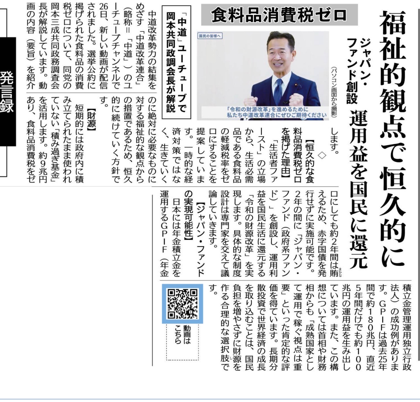 本日は、公明新聞「(中道改革連合 重点政策)食料品の消費税ゼロ/今年の秋から恒久的に実現」を読み、