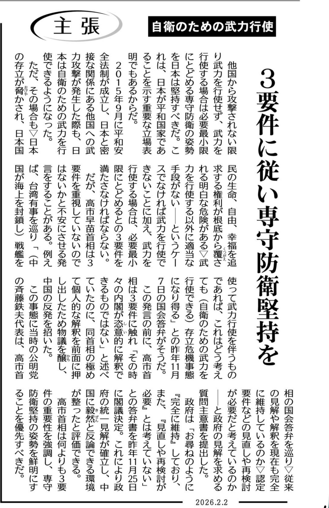 本日は、公明新聞電子版に掲載された「自衛のための武力行使」を巡る議論をもとに、