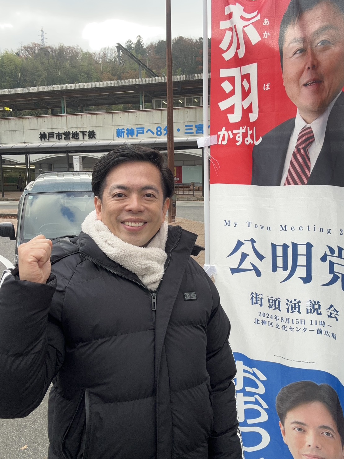 12月8日月曜日、神戸電鉄谷上駅で朝のご挨拶活動を行いました。