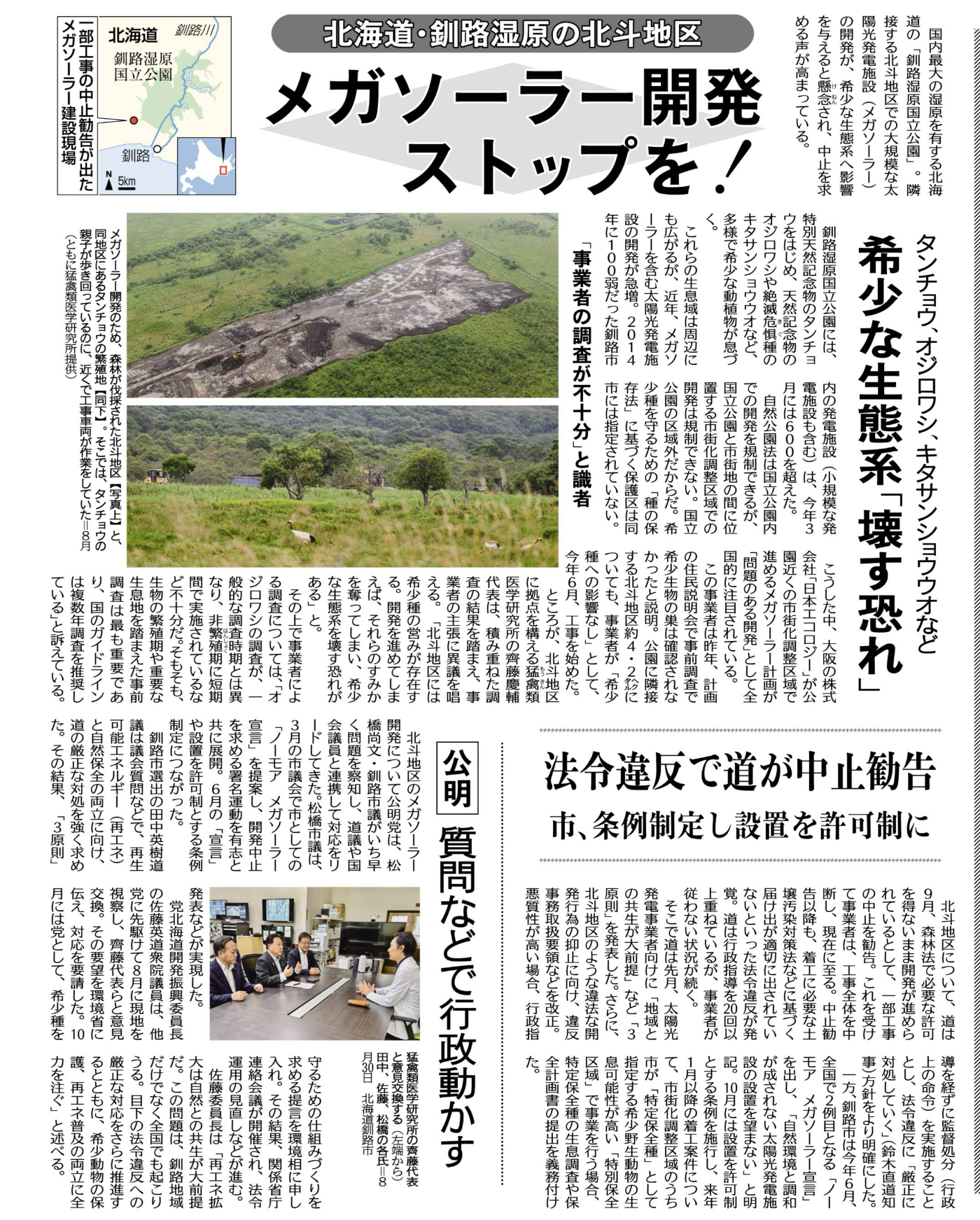 本日は、公明新聞で報じられた北海道釧路市におけるメガソーラー計画の動きについてお伝えします。