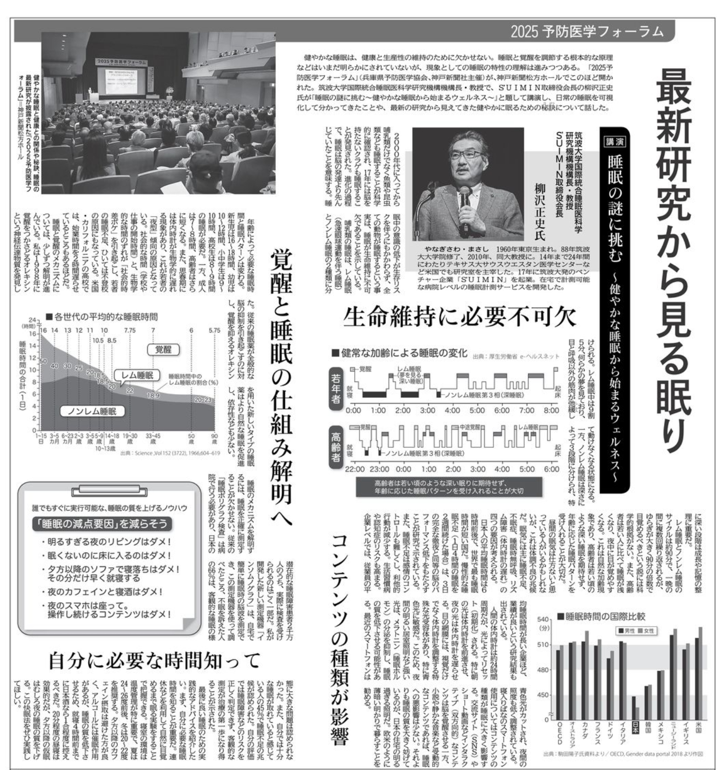 本日は、神戸新聞で紹介された「予防医学フォーラム」における最新の睡眠研究