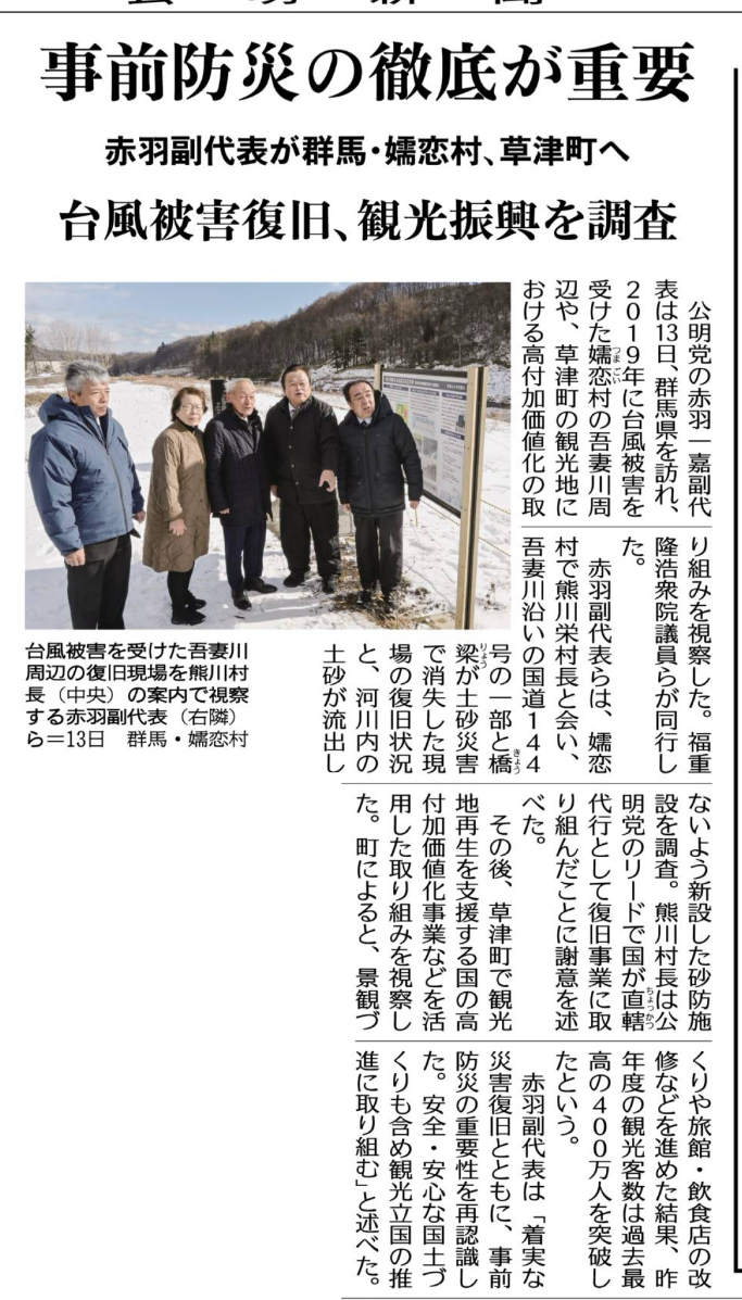 群馬県嬬恋村および草津町を訪れ、災害復旧や地域振興の現状を視察しました。
