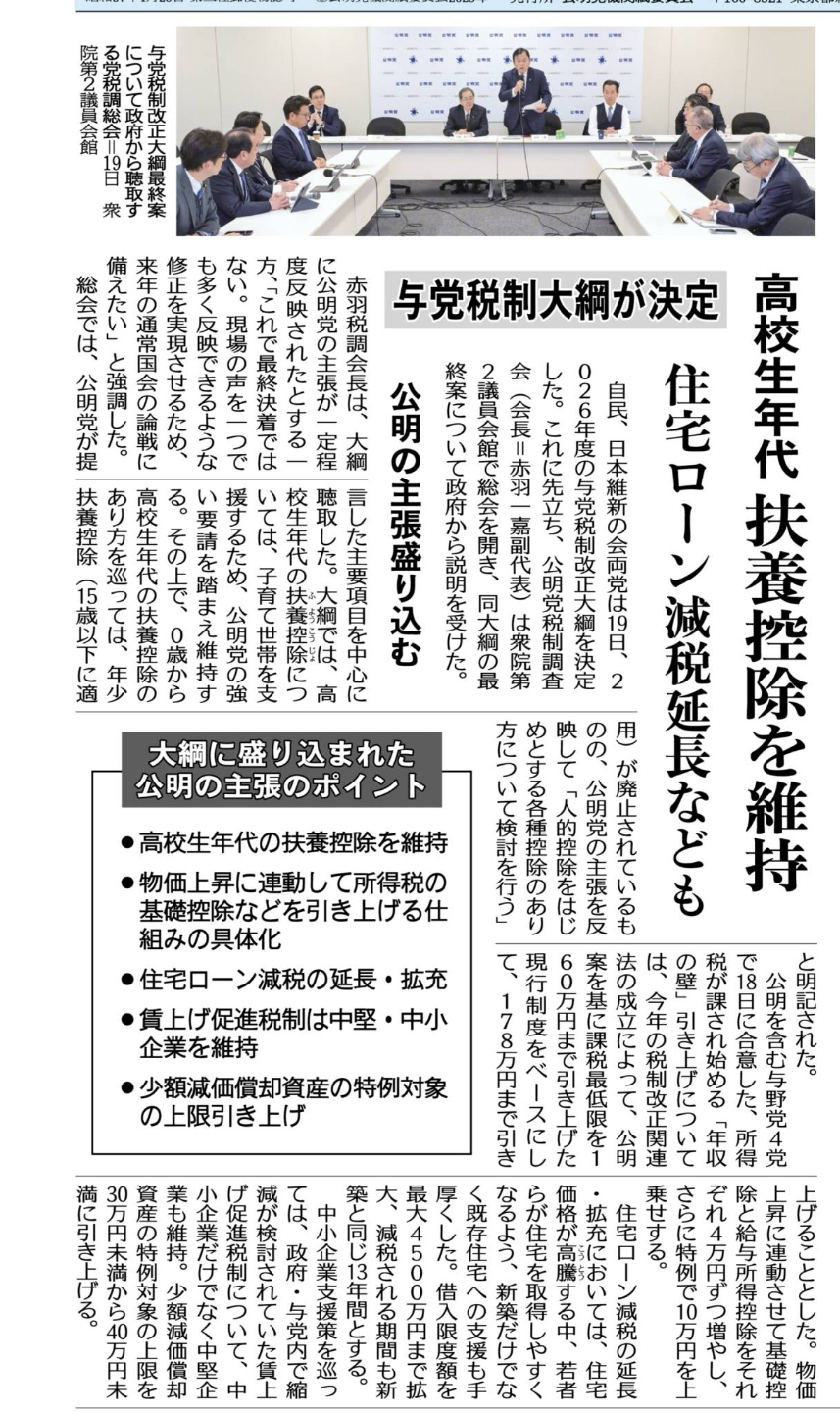 今回は、先日決定された「与党税制大綱」について、公明党の主張がどのように反映されたのか、