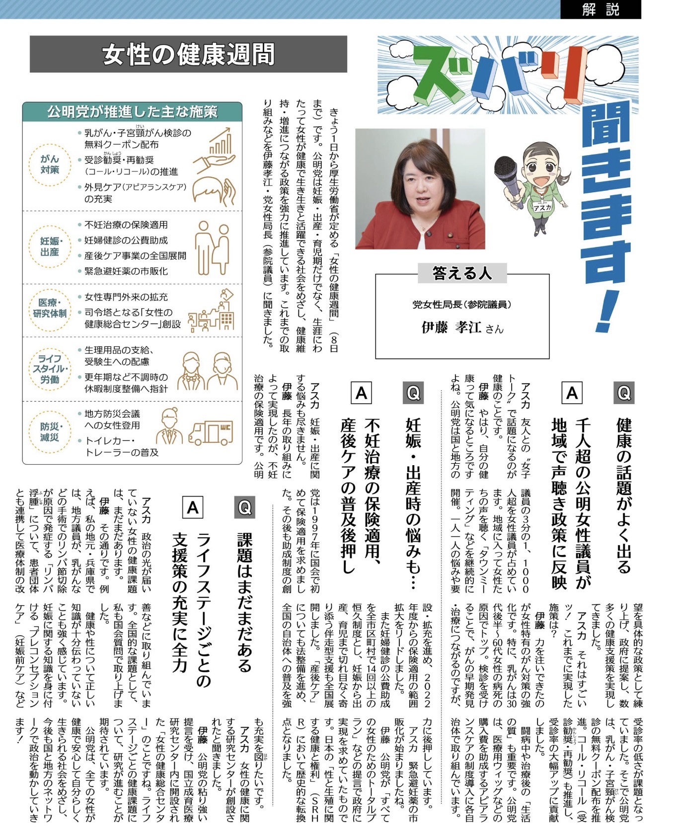 公明新聞で特集されていた「女性の健康週間」。