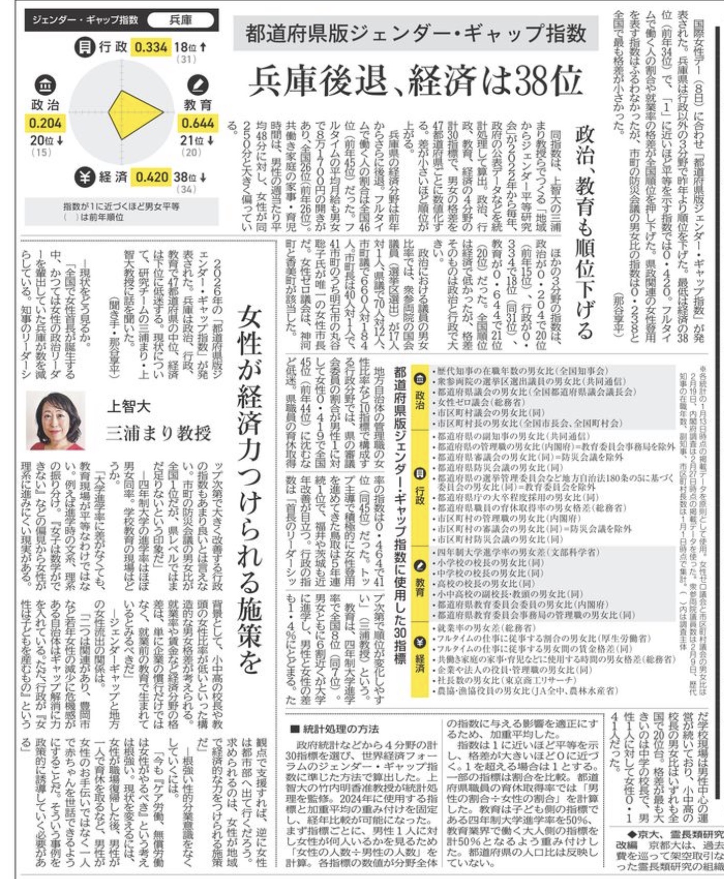 兵庫県のジェンダー・ギャップ指数に関する報道に触れ、地域社会における男女格差の現状と課題について