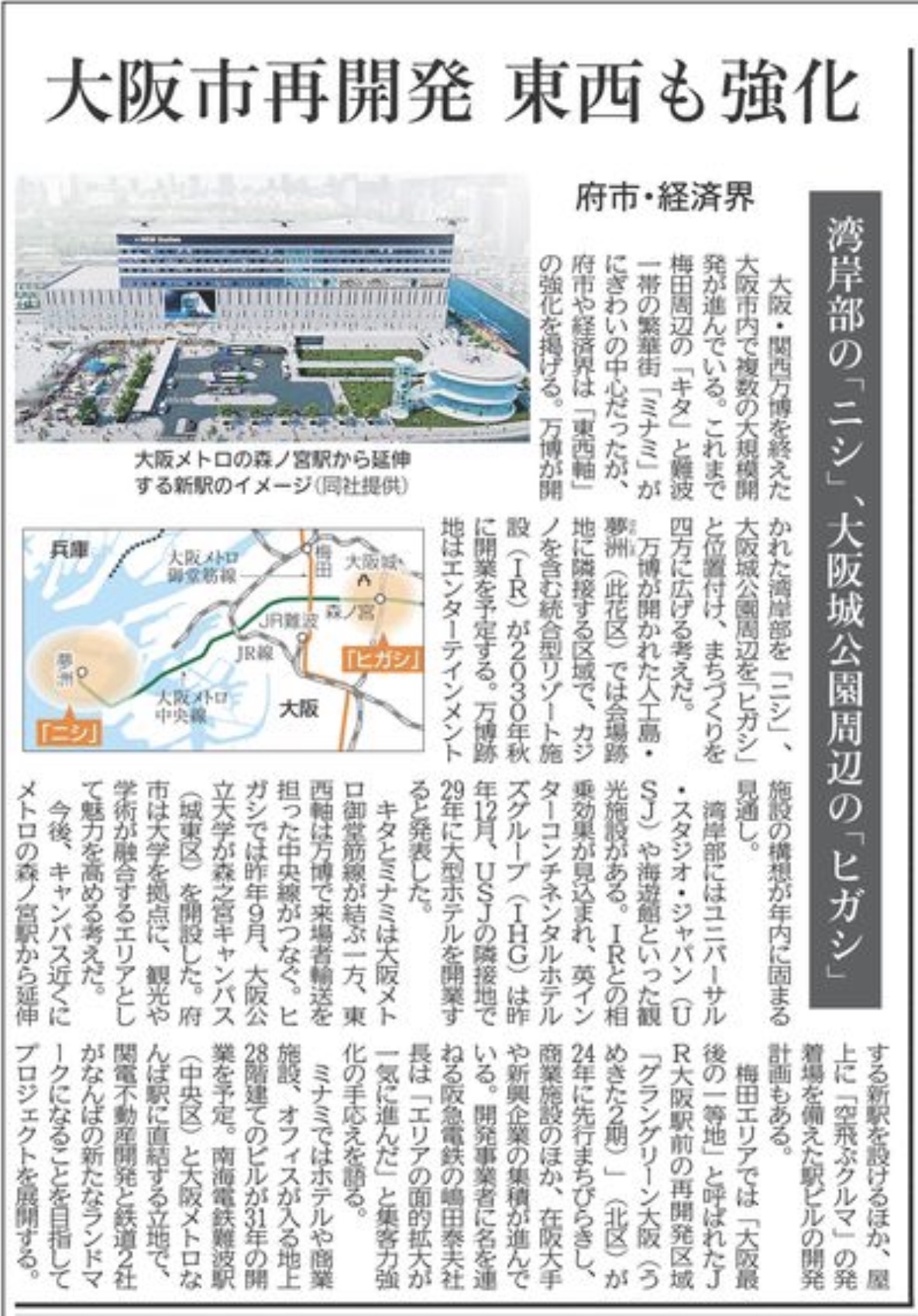 2025年大阪・関西万博(終了後)を見据えたまちづくりが本格化し、関西全体の成長戦略にも