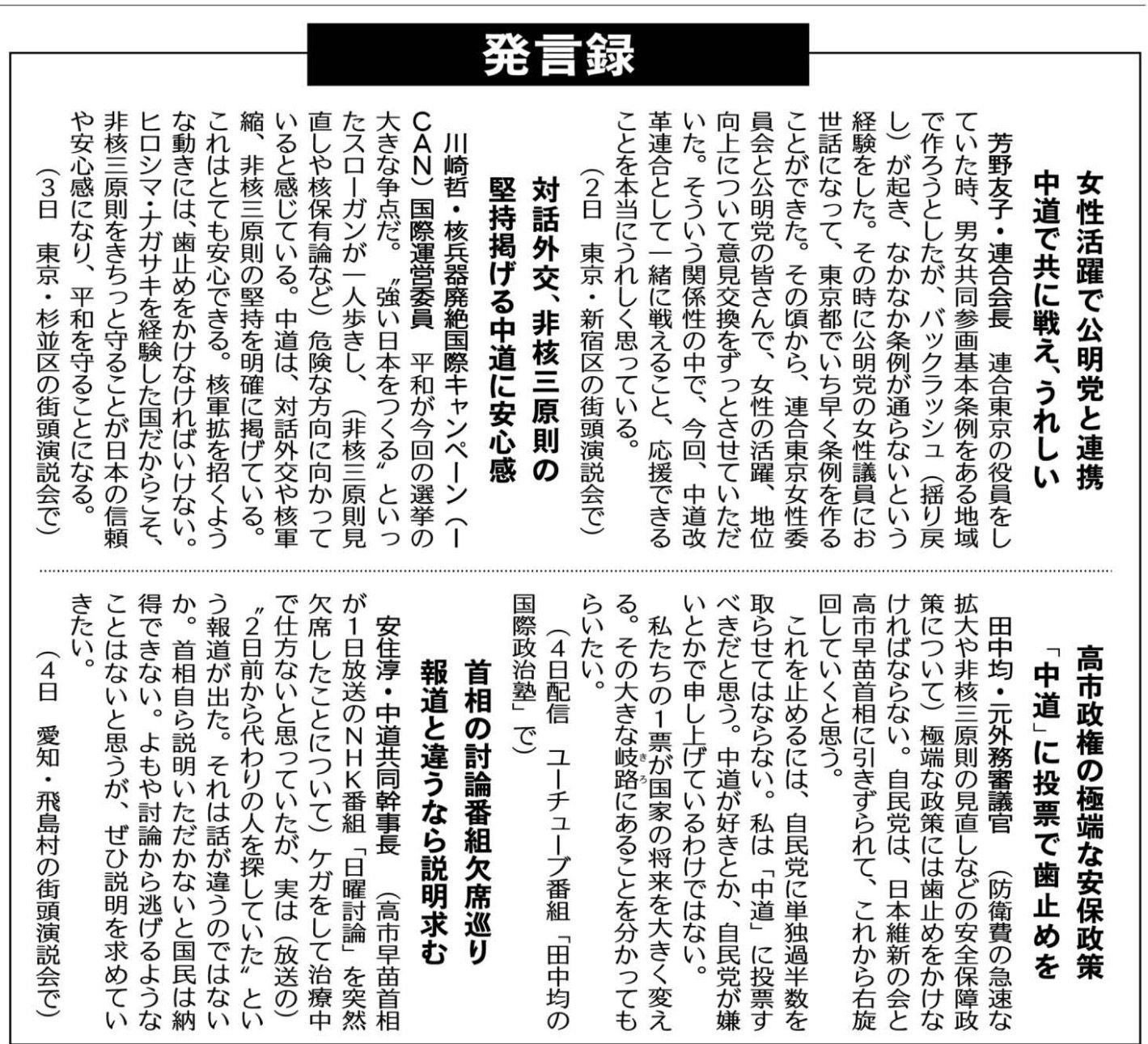 さらに、女性の政治参加や、多様な立場の声を政治に反映させる重要性にも触れられていました。