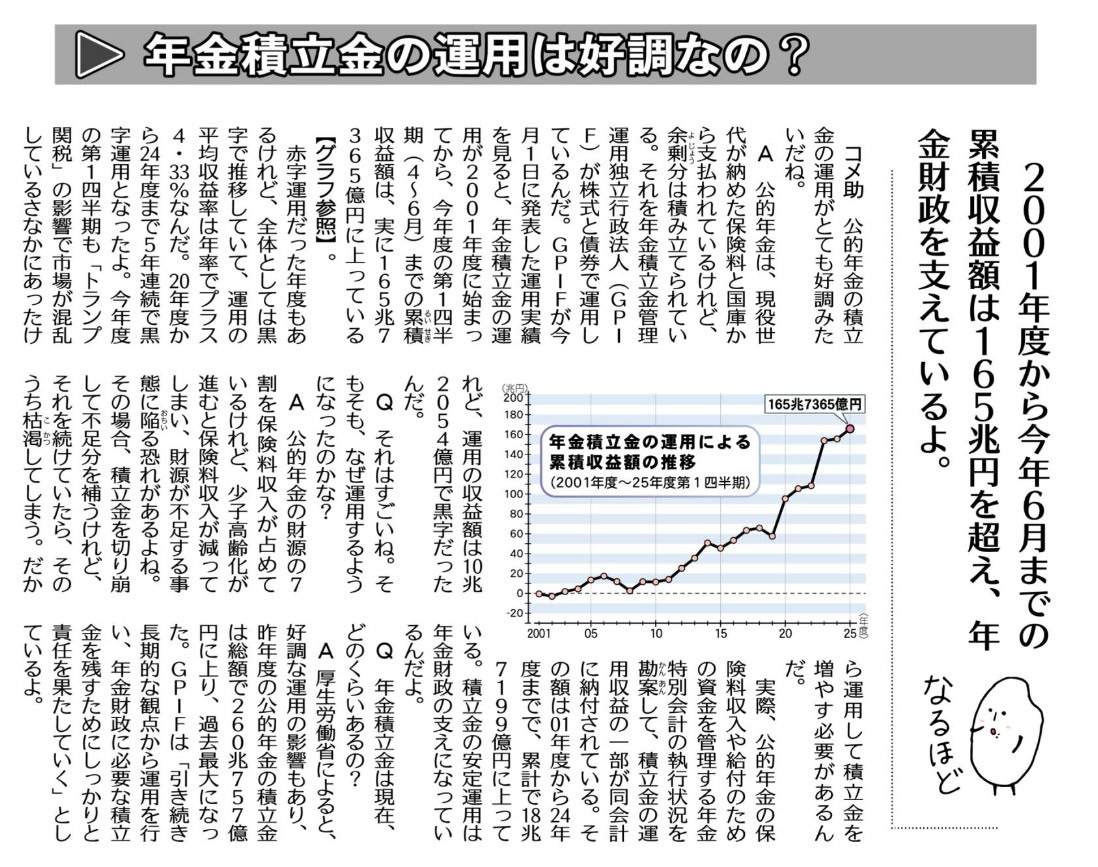コメ助 ― 年金の積立金、運用がとても順調なんだね。