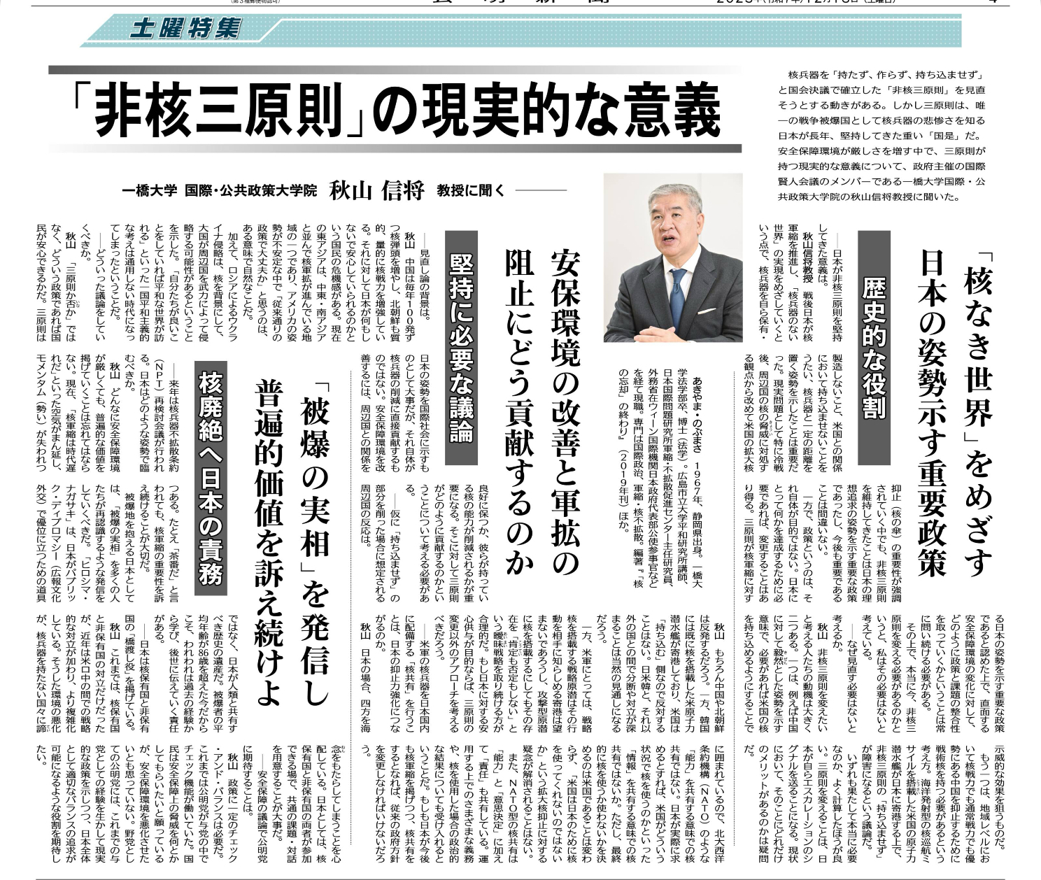 本日は、公明新聞の特集記事「『非核三原則』の現実的な意義」を踏まえ、非核三原則の意味と、
