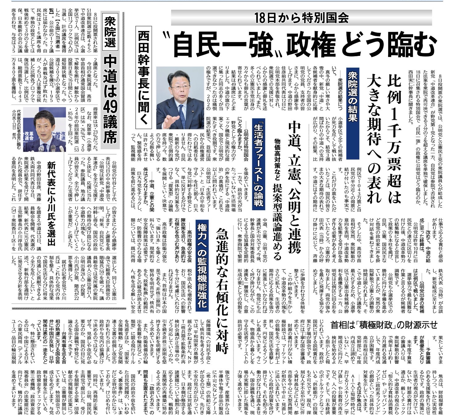 衆院選後の政治情勢と、18日からの特別国会に向けた論点が報じられています。