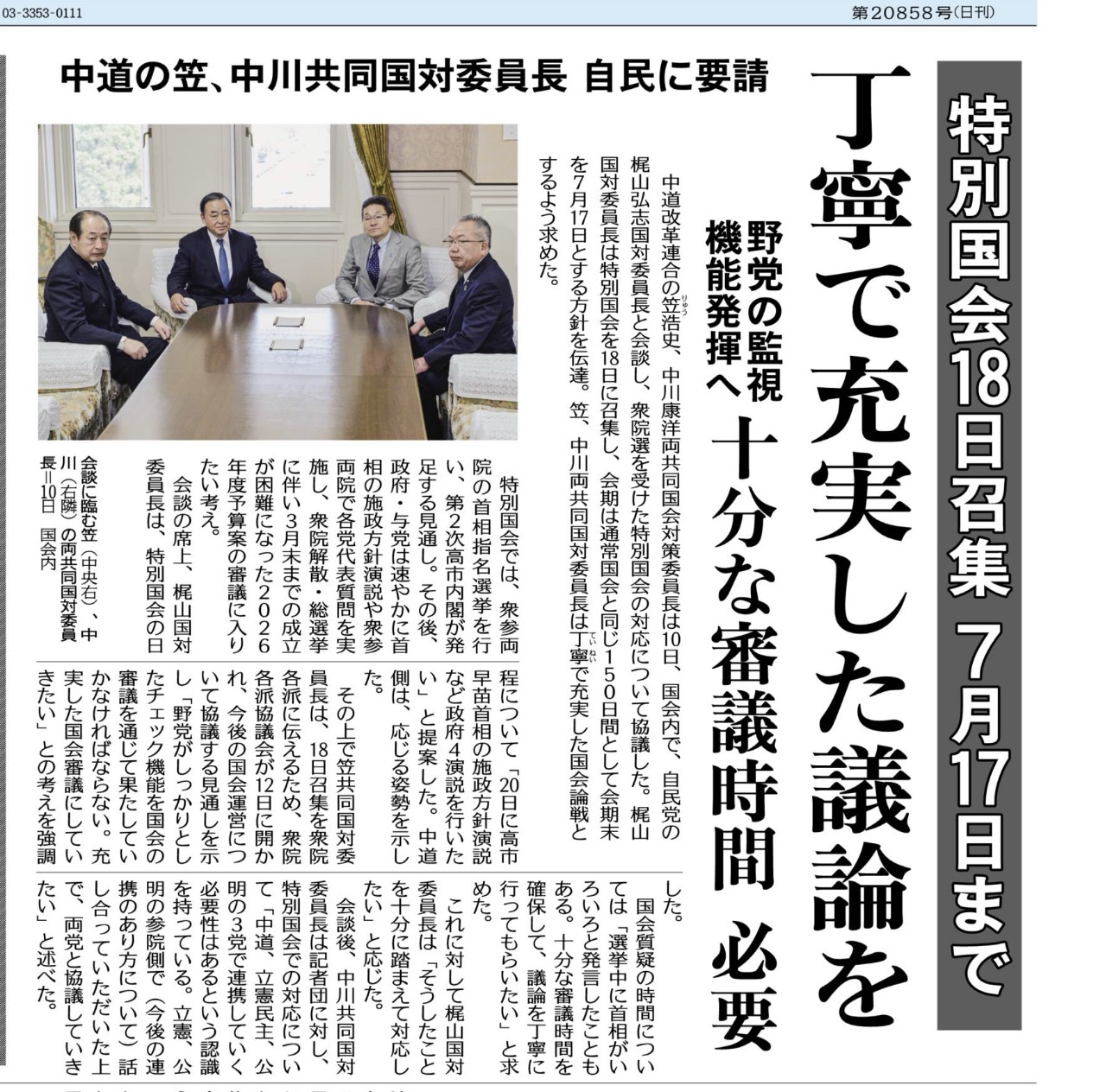 拙速ではなく、与野党が十分に議論を重ねることが、国会の監視機能を果たす上で不可欠です。