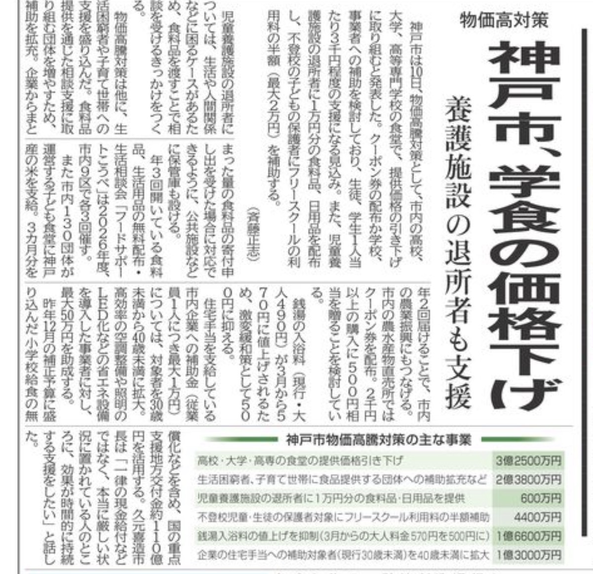 物価高騰が長期化する中、神戸市が総額35億円規模の物価高対策を打ち出したと報じられました。
