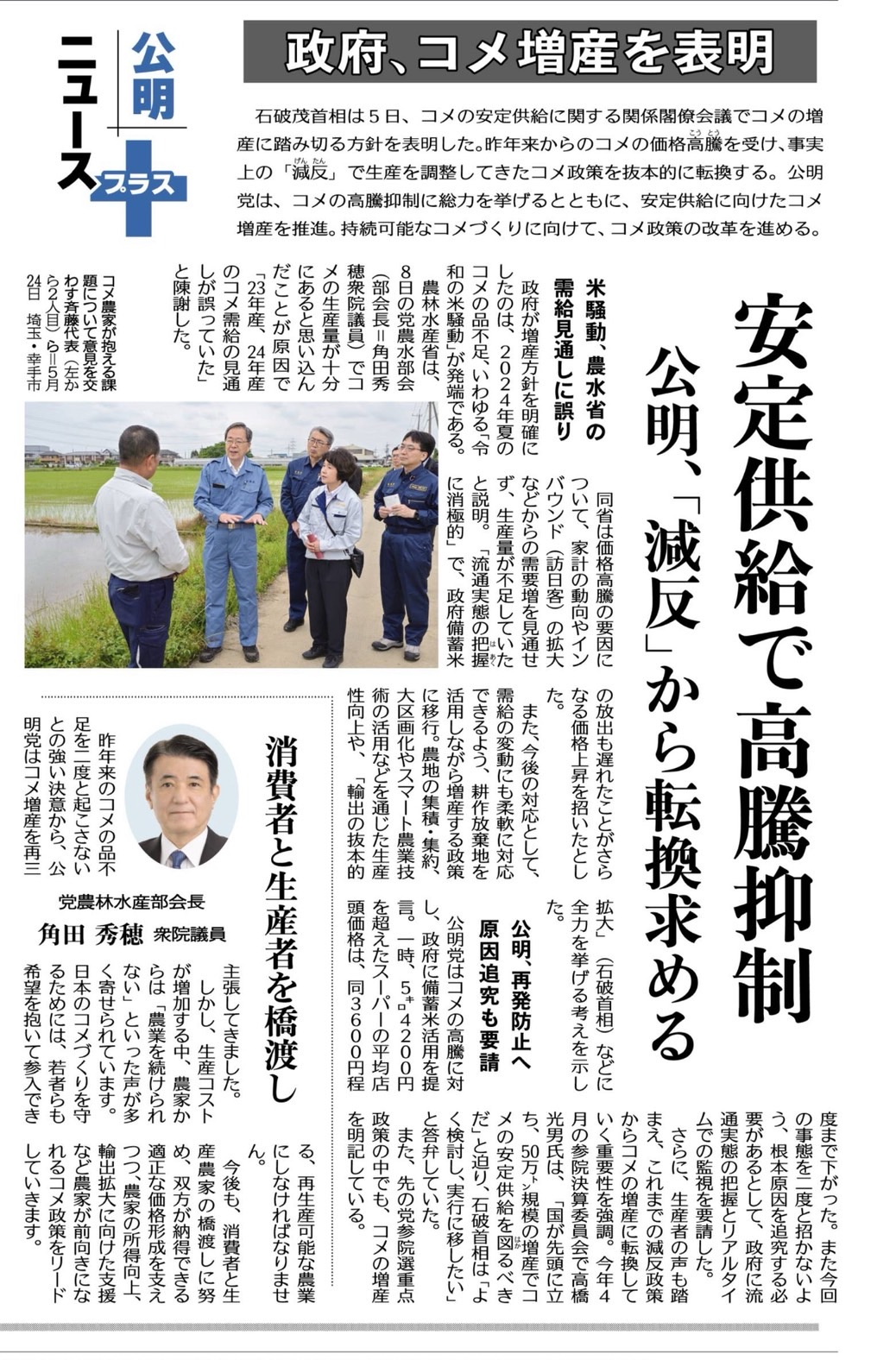 公明党は当初から、単なる需要抑制では消費者にも生産者にも持続的な安心はもたらされないと考え、政府に「増産と安定供給、価格高騰の抑制」を強く求めてきました。現場の農家の皆さまや流通関係者の声をくみ取り、食卓を守るための土台作りに全力を尽くします。