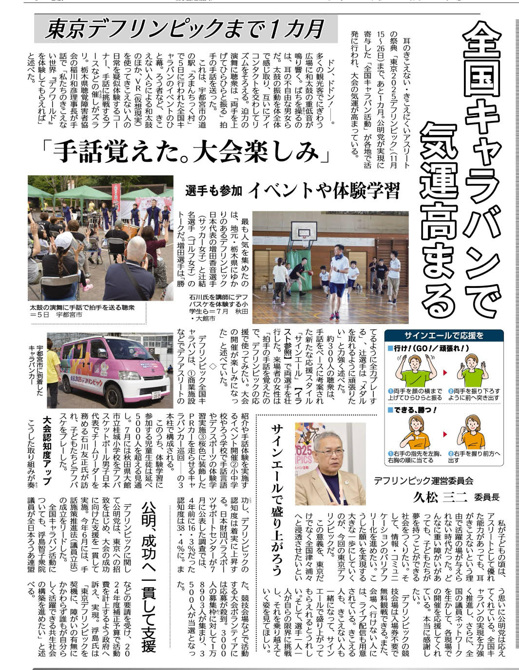 来月11月開幕の「東京2025デフリンピック」を前に、全国で大会機運を高めるキャラバンイベントが行われています。耳の聞こえない方と聞こえる方が交流し、手話やスポーツを通じて心がつながる、温かい輪が広がっています。