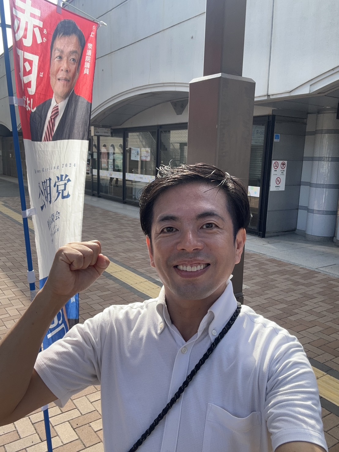 8月18日(月)の朝は、神戸電鉄の谷上駅前にて朝のご挨拶から一日を始めました。