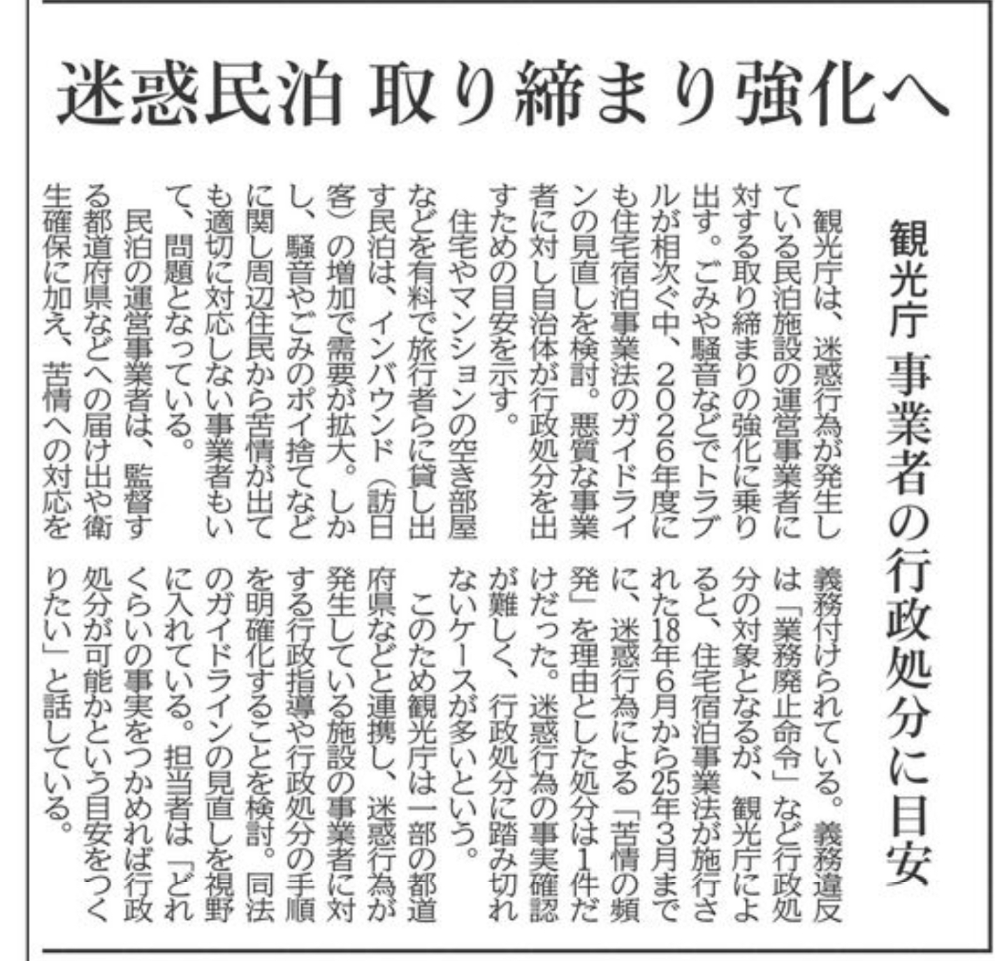 観光需要の回復とともに、住宅地における「迷惑民泊」を巡る問題が各地で顕在化しています。