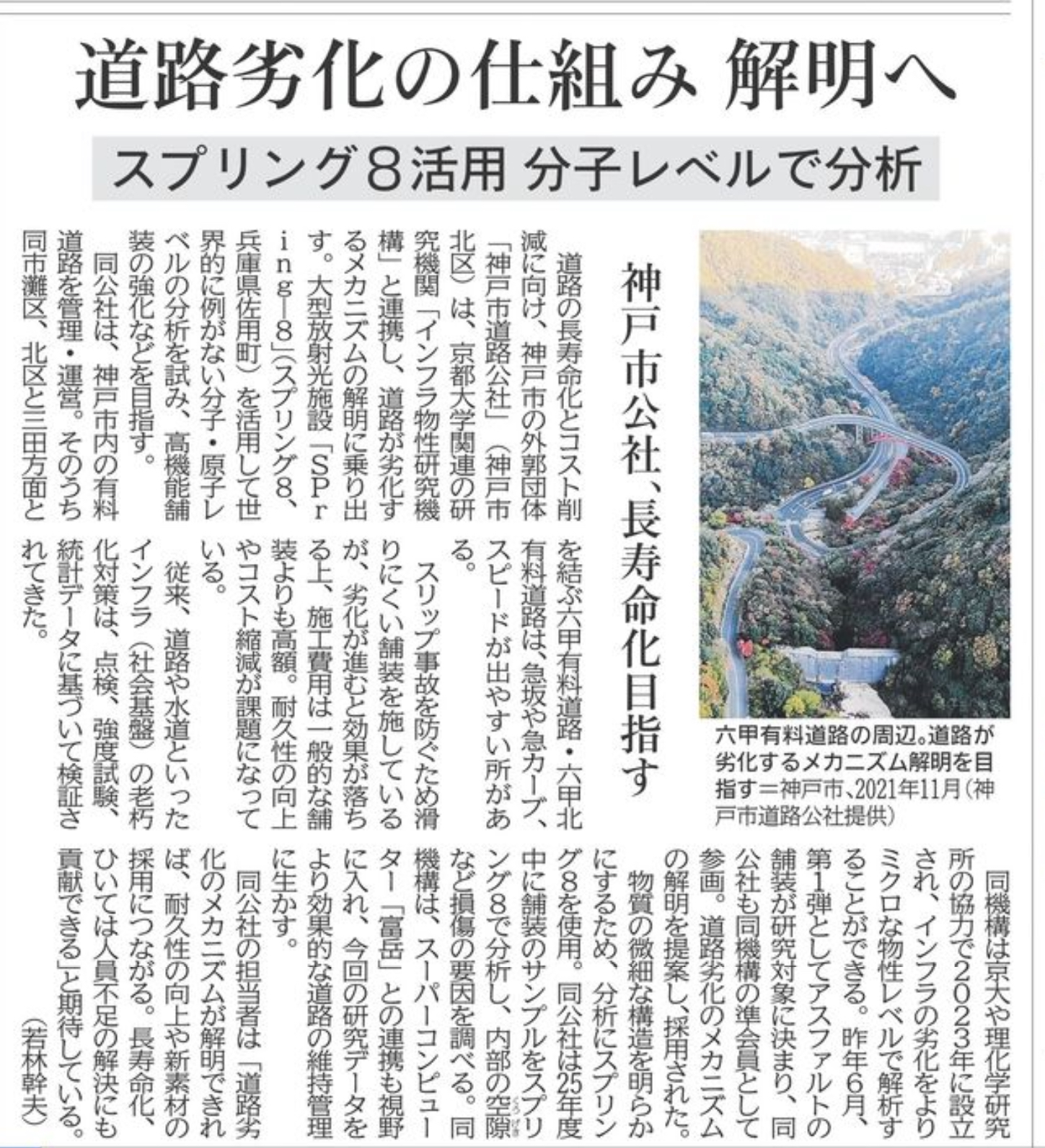 道路の劣化メカニズムを分子・原子レベルで分析する研究を始めました。(出典:神戸新聞)