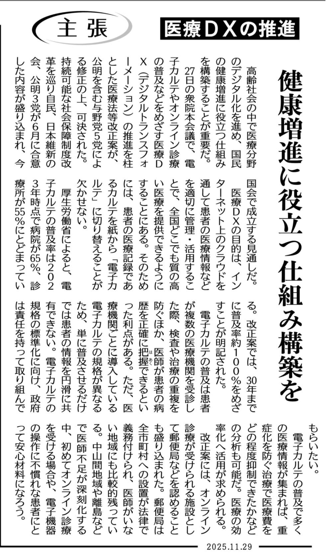 法改正には、オンライン診療や遠隔支援の拡充も盛り込まれています。医師が少ない地域や高齢化が進む地域で、