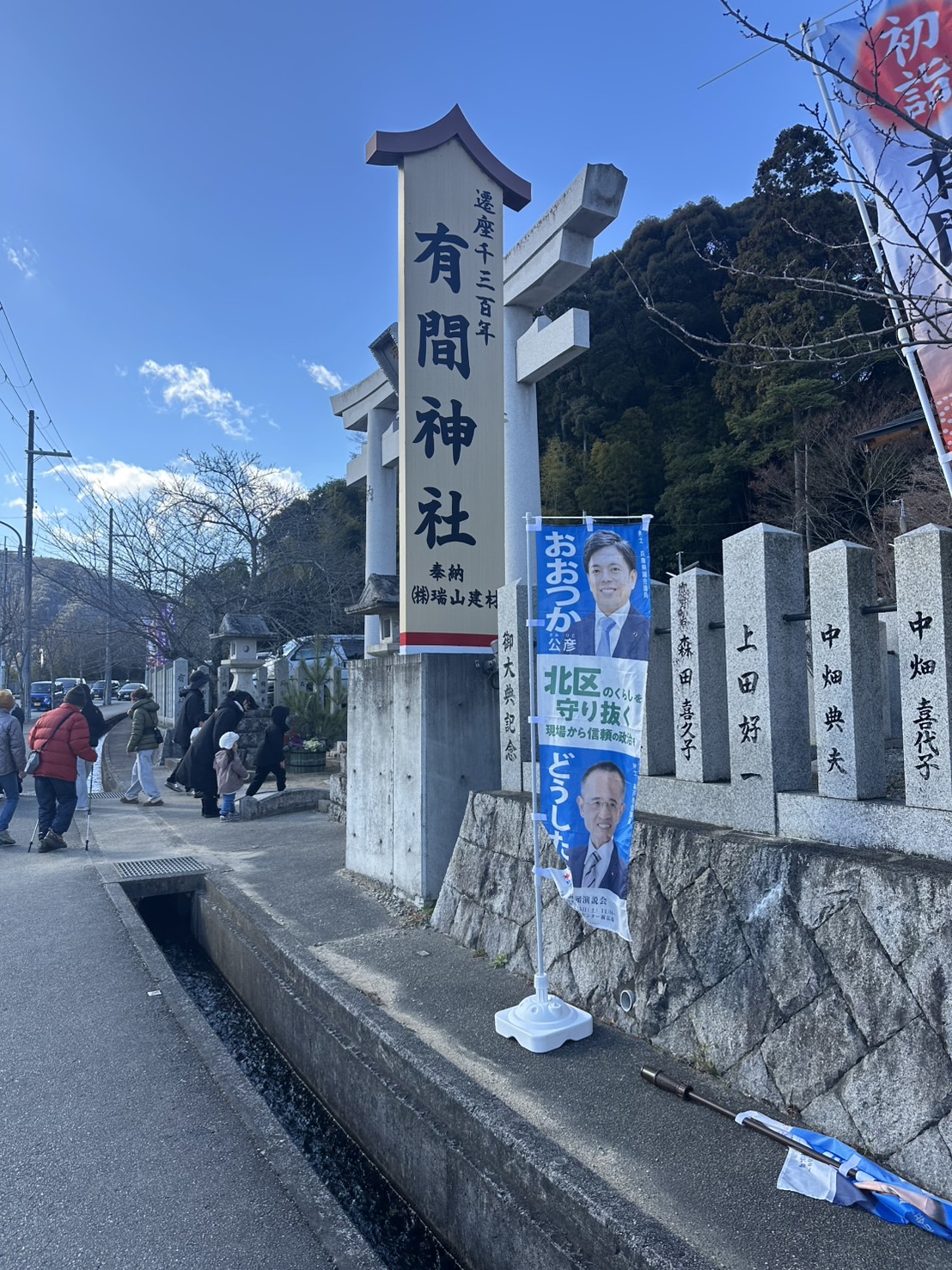 2026年のスタートは、地元の誇りである有間神社の前から。