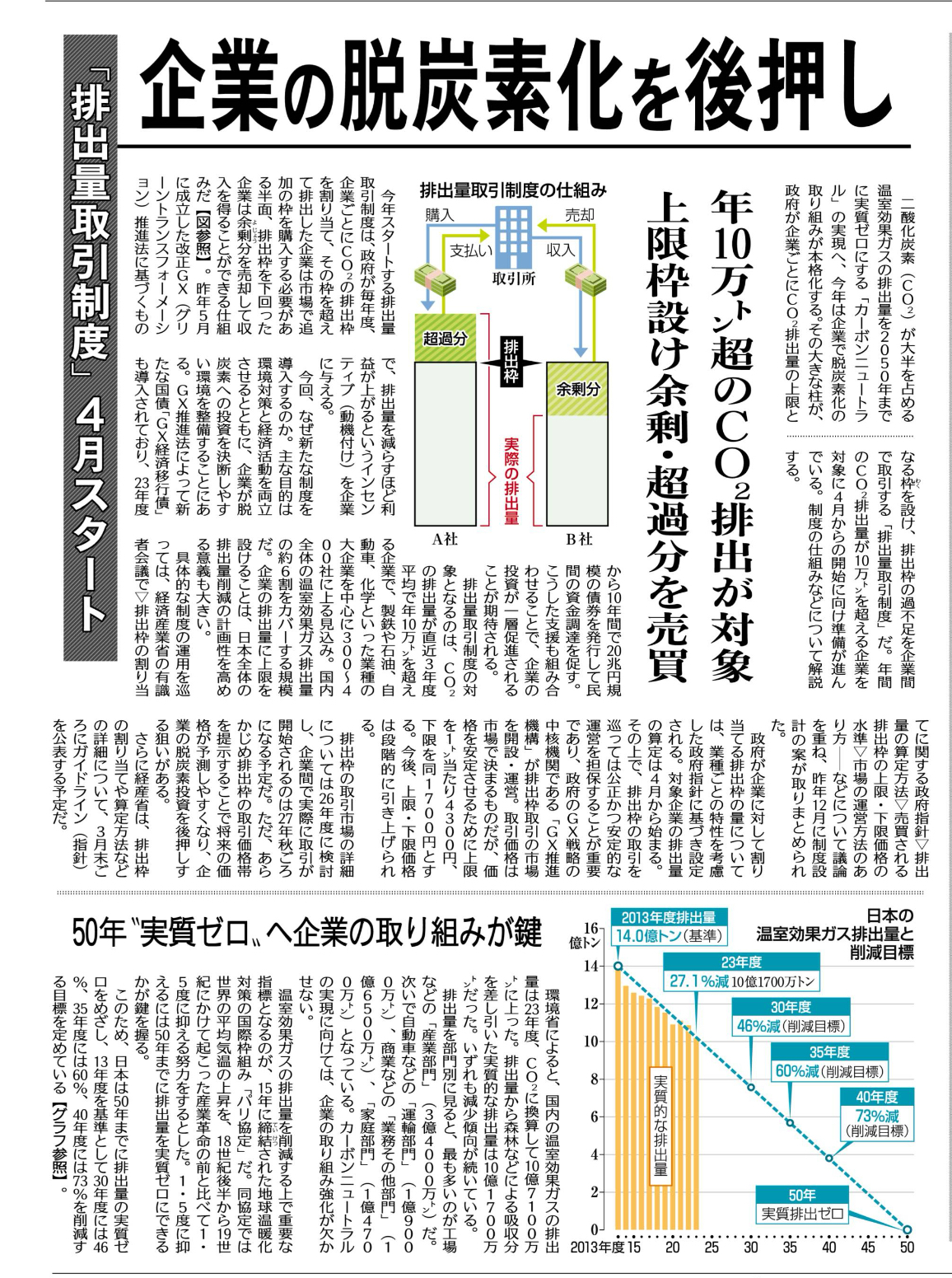 記事では、2026年4月から本格的に始まる排出量取引制度の仕組みが紹介されています。