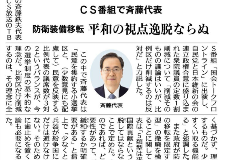 こんにちは、神戸市北区選出の兵庫県議会議員・大塚公彦です。 今回は、公明党・斉藤鉄夫代表がCS番組で…