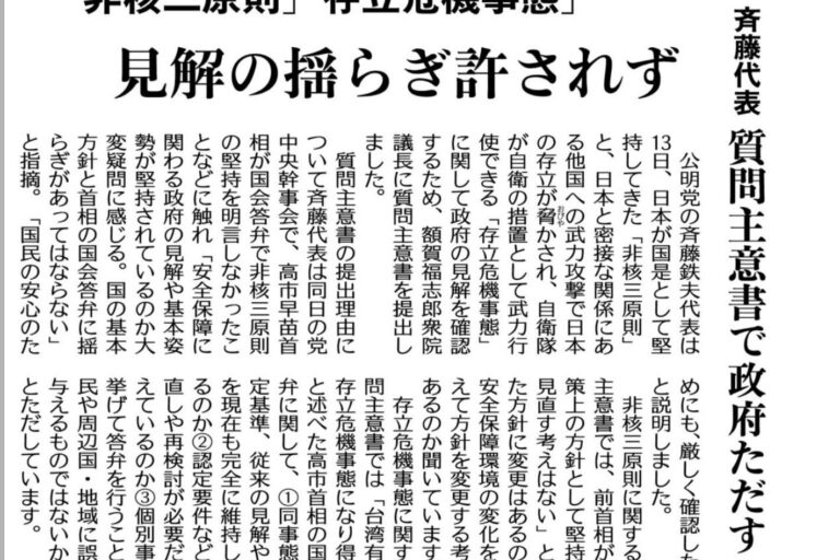こんにちは、神戸市北区選出の兵庫県議会議員、大塚公彦です。 今回は、公明党・斉藤鉄夫代表が国会に提出…