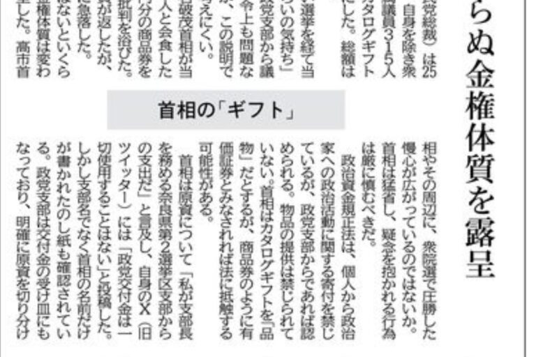 こんにちは、神戸市北区選出の兵庫県議会議員、大塚公彦です。 神戸新聞の社説で、「首相のギフト券」問題…