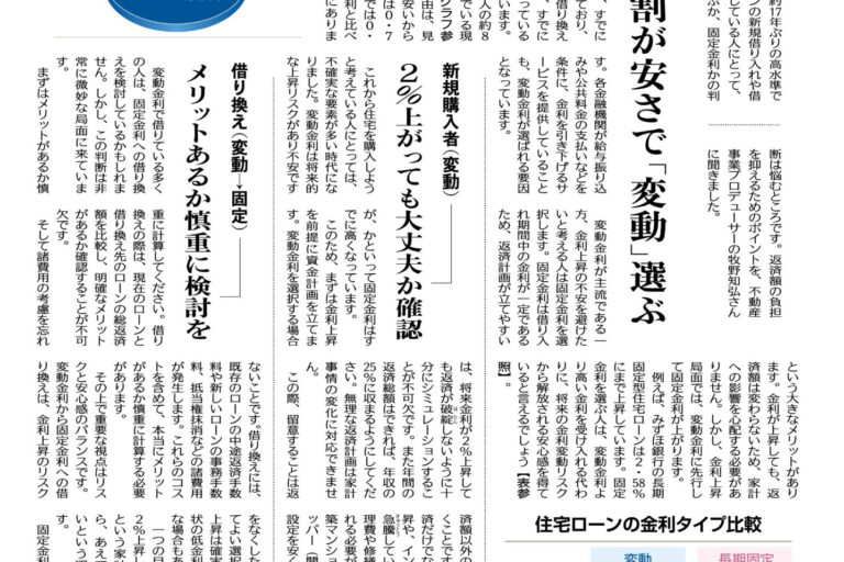 物価やエネルギーコストが上がるなか、住宅ローンの「金利タイプ選び」は家計に直結する大切なテーマです。…