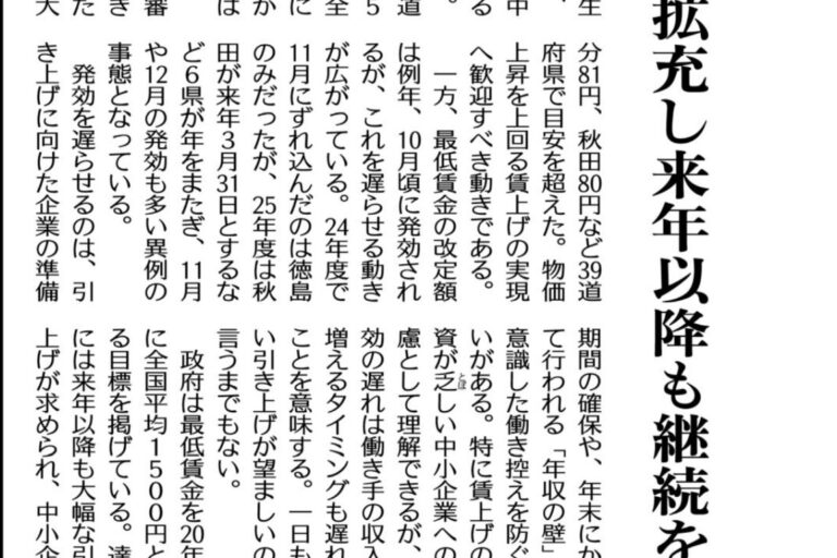 本日は、最低賃金の引き上げと、それに伴う中小企業支援の拡充について、公明新聞の社説からご紹介いたしま…