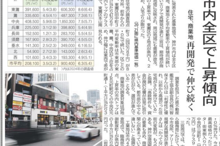 今回は、9月16日に公表された「基準地価(2024年調査、7月1日基準)」の結果と、神戸新聞の記事を…