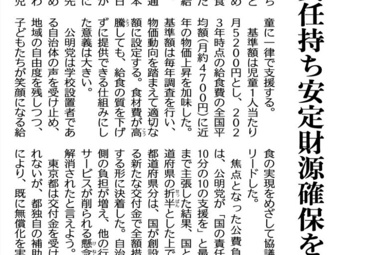 こんにちは、神戸市北区選出の兵庫県議会議員、大塚公彦です。 本日は、公明新聞に掲載された「学校給食費…