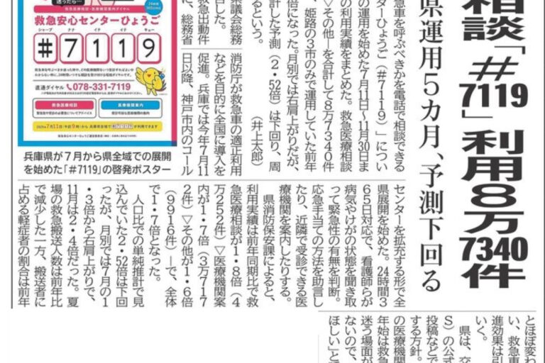 こんにちは、神戸市北区選出の兵庫県議会議員、大塚公彦です。 本日は、兵庫県内で運用されている救急相談…