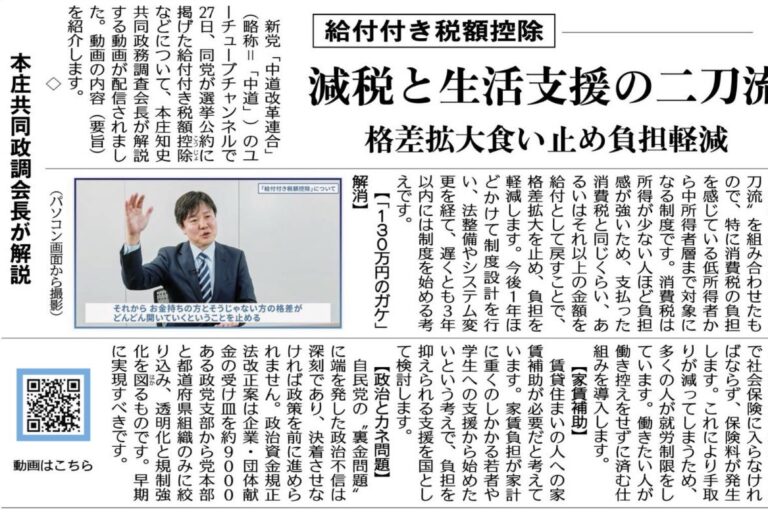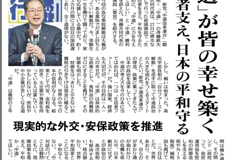 こんにちは、神戸市北区選出の兵庫県議会議員、大塚公彦です。 本日は、公明新聞「(中道改革連合 重点政…
